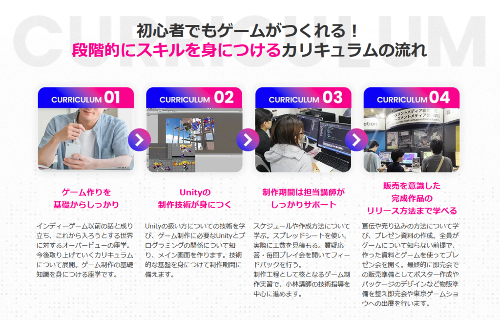 こちらでまずゲーム制作の基礎知識を身につけます。